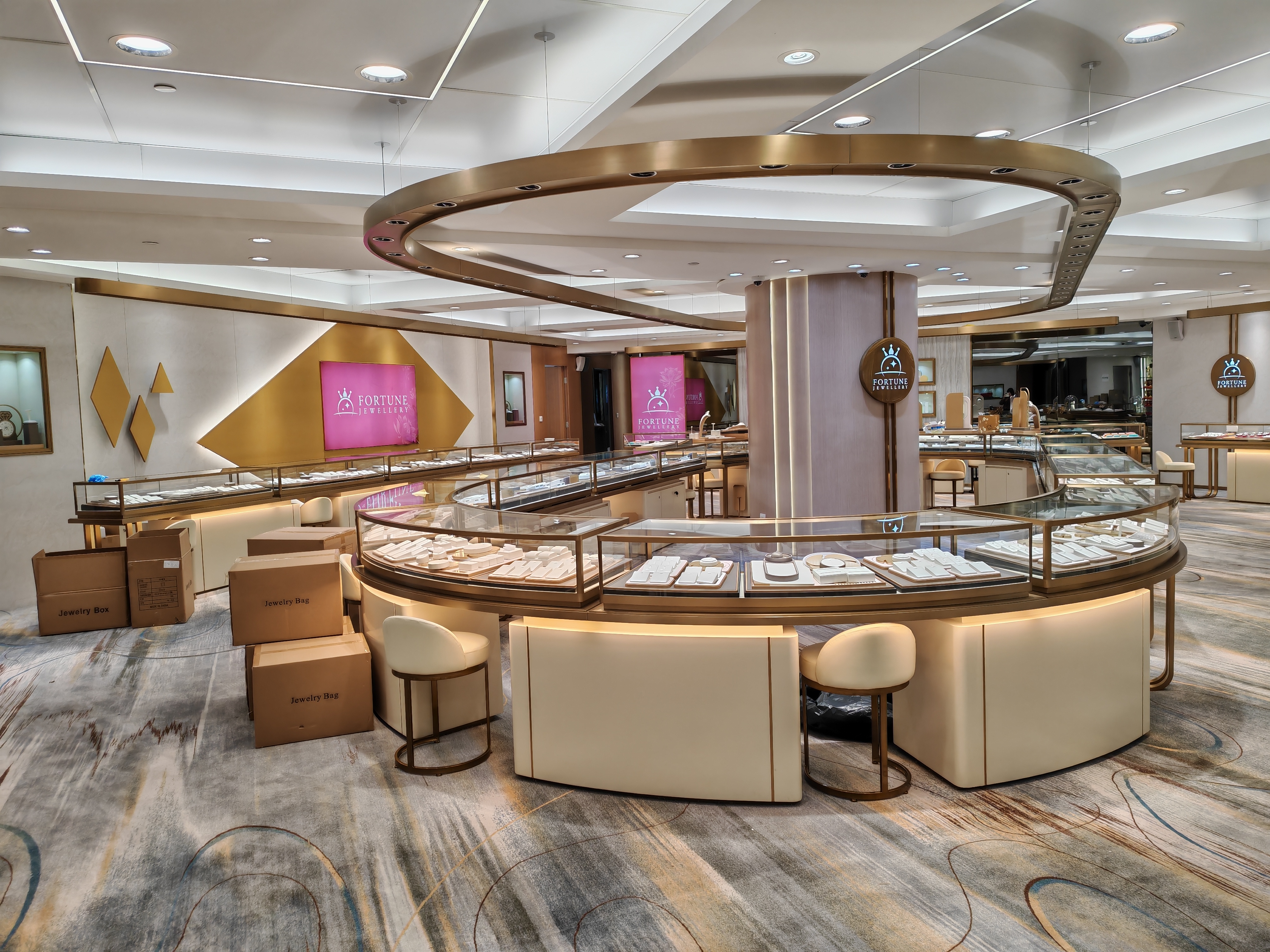 The new store of Fortune Jewellery is not merely a place to display jewelry, but also a perceivable brand medium. Through the use of modern and light luxury design language, meticulous material combinations, and humanized spatial planning, we have helped the brand: