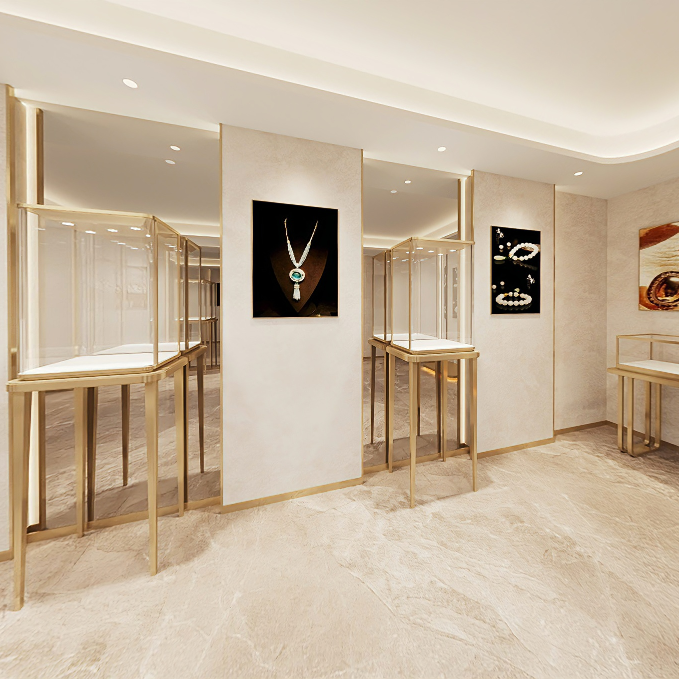Fortune Jewellery aims to convey not ostentatious luxury but a restrained, textured elegance. We positioned its style as "Modern Light Luxury + Refined Luxury", eliminating the elaborate decorations and heavy tones commonly found in traditional jewelry stores. Instead, we employed simple yet layered lines and light to create an atmosphere that is both elegant and modern.