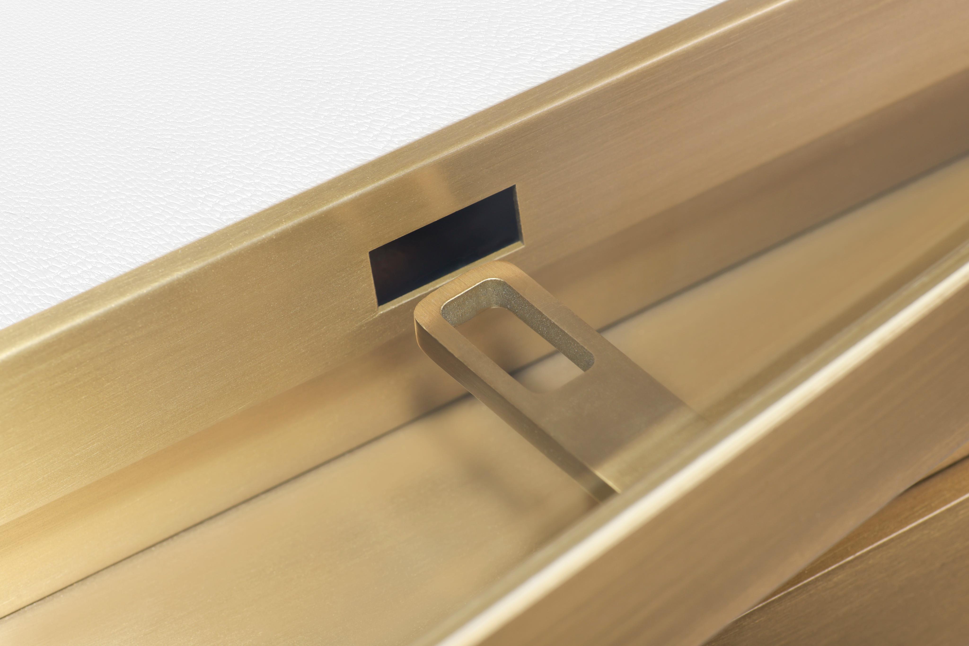 Built with a reinforced four-leg metal base for unwavering stability, high-transparency glass, and a tarnish-resistant champagne gold PVD finish for enduring elegance.